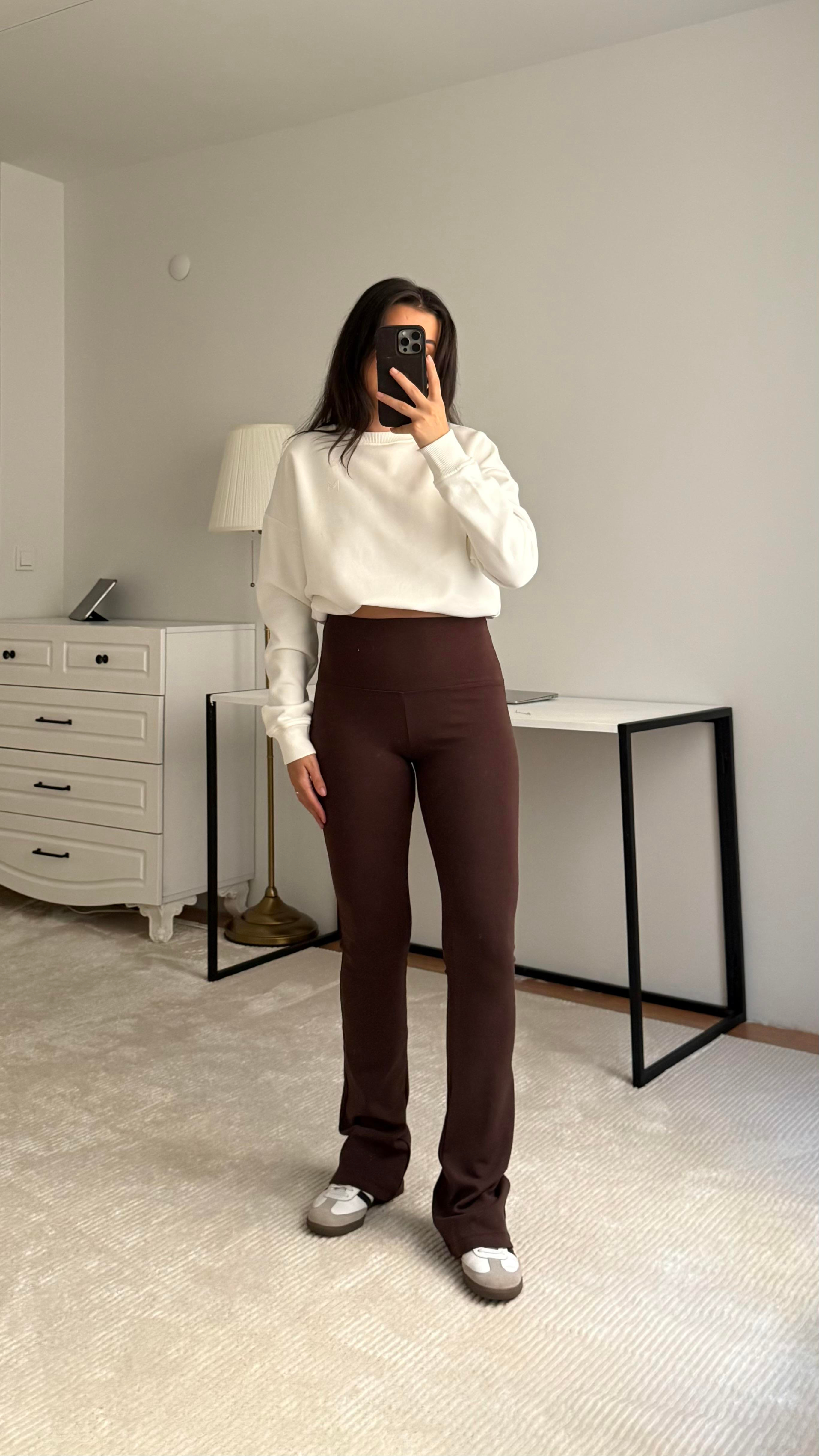 Bersh Acı Kahve Yüksek Bel Flare Tayt Pant