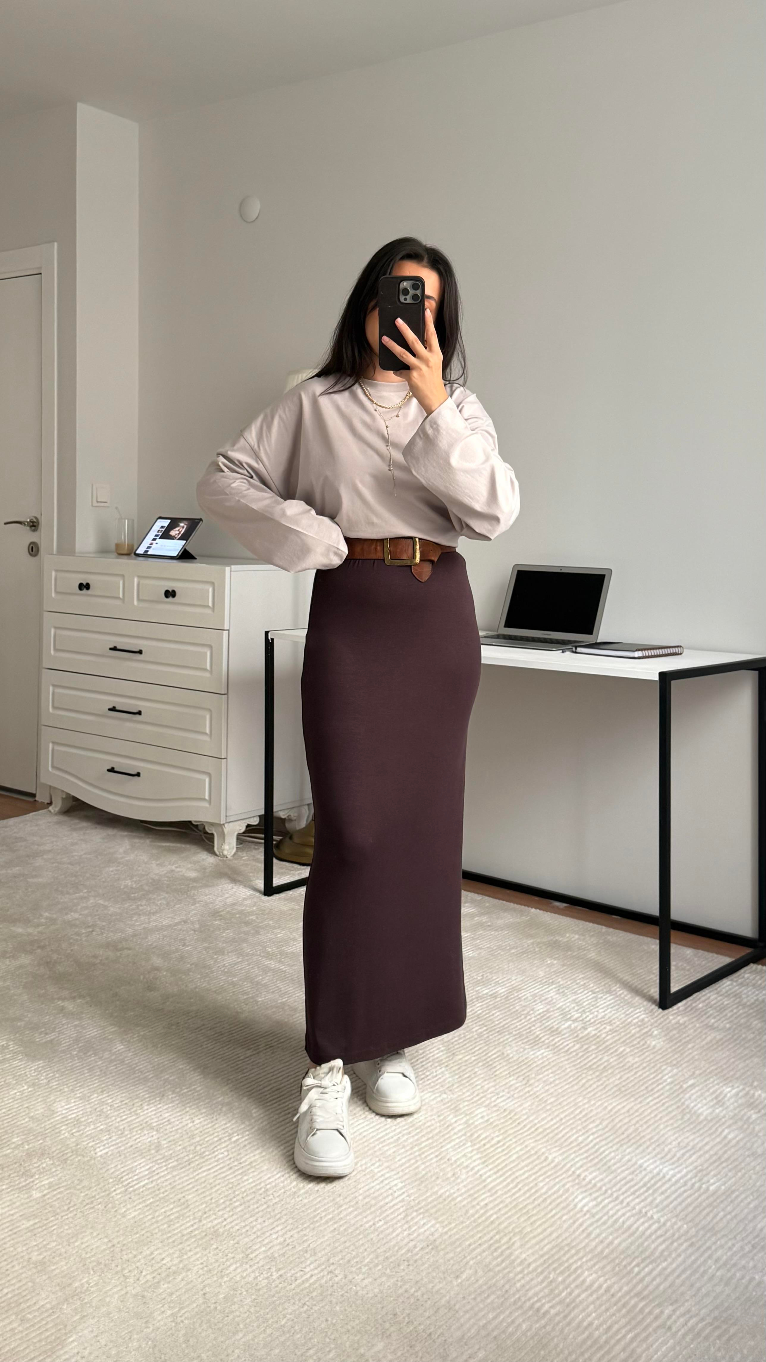 Mark Acı Kahve Soft Touch Midi Boy Etek