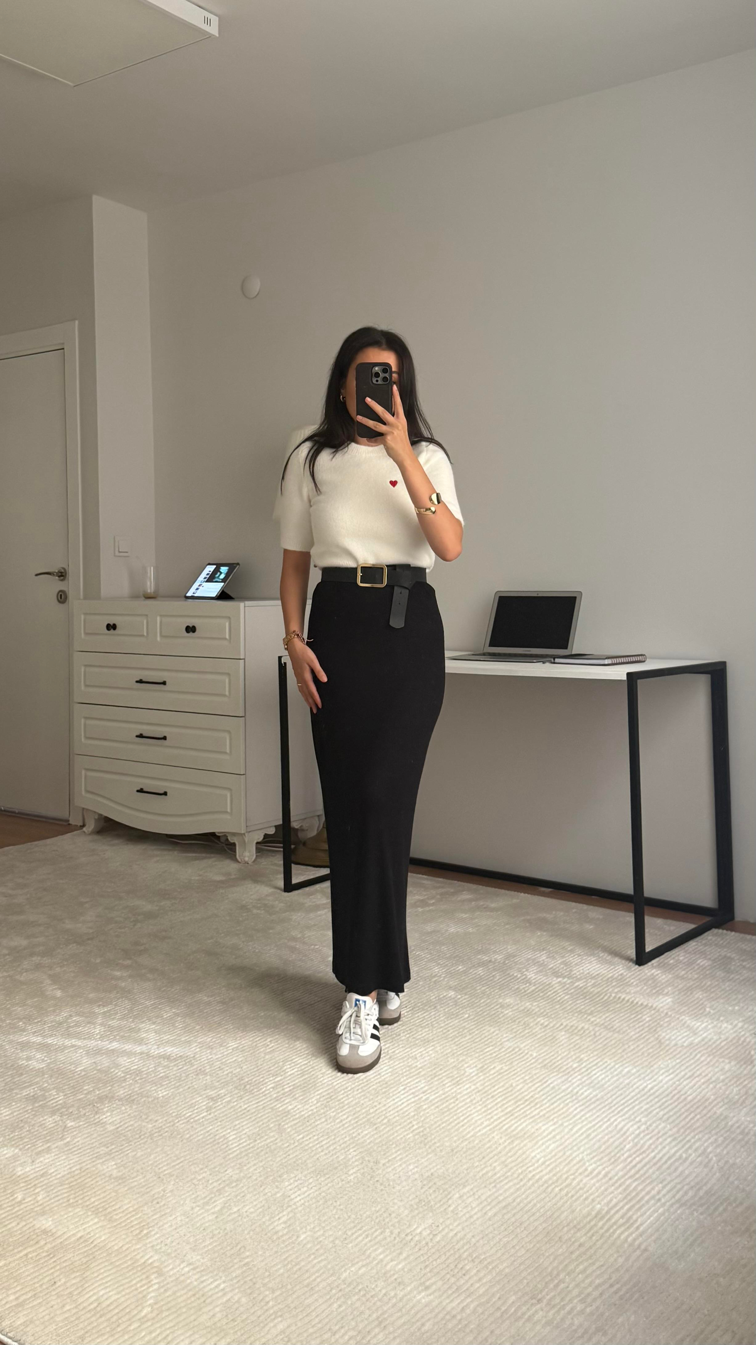Mark Siyah Soft Touch Midi Boy Etek