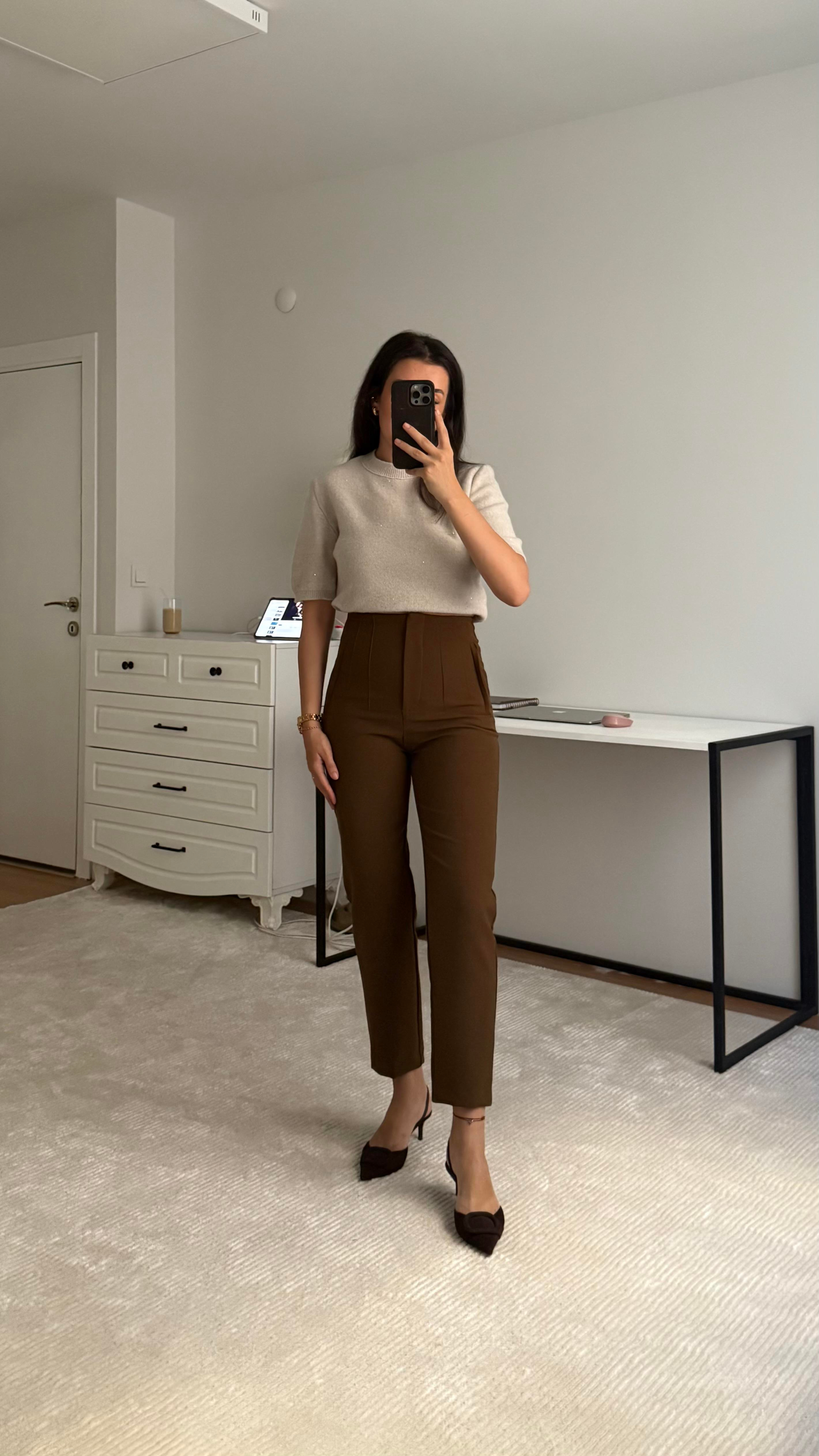 Marka Kahve Filetolu Kalem Kumaş Pantolon